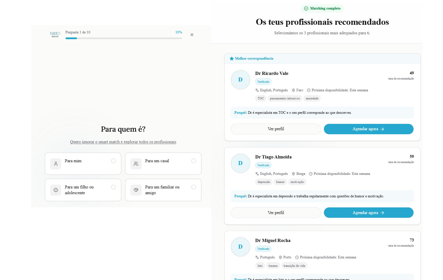 "Foi fácil comparar perfis e perceber quem fazia sentido para mim sem perder horas em pesquisa."